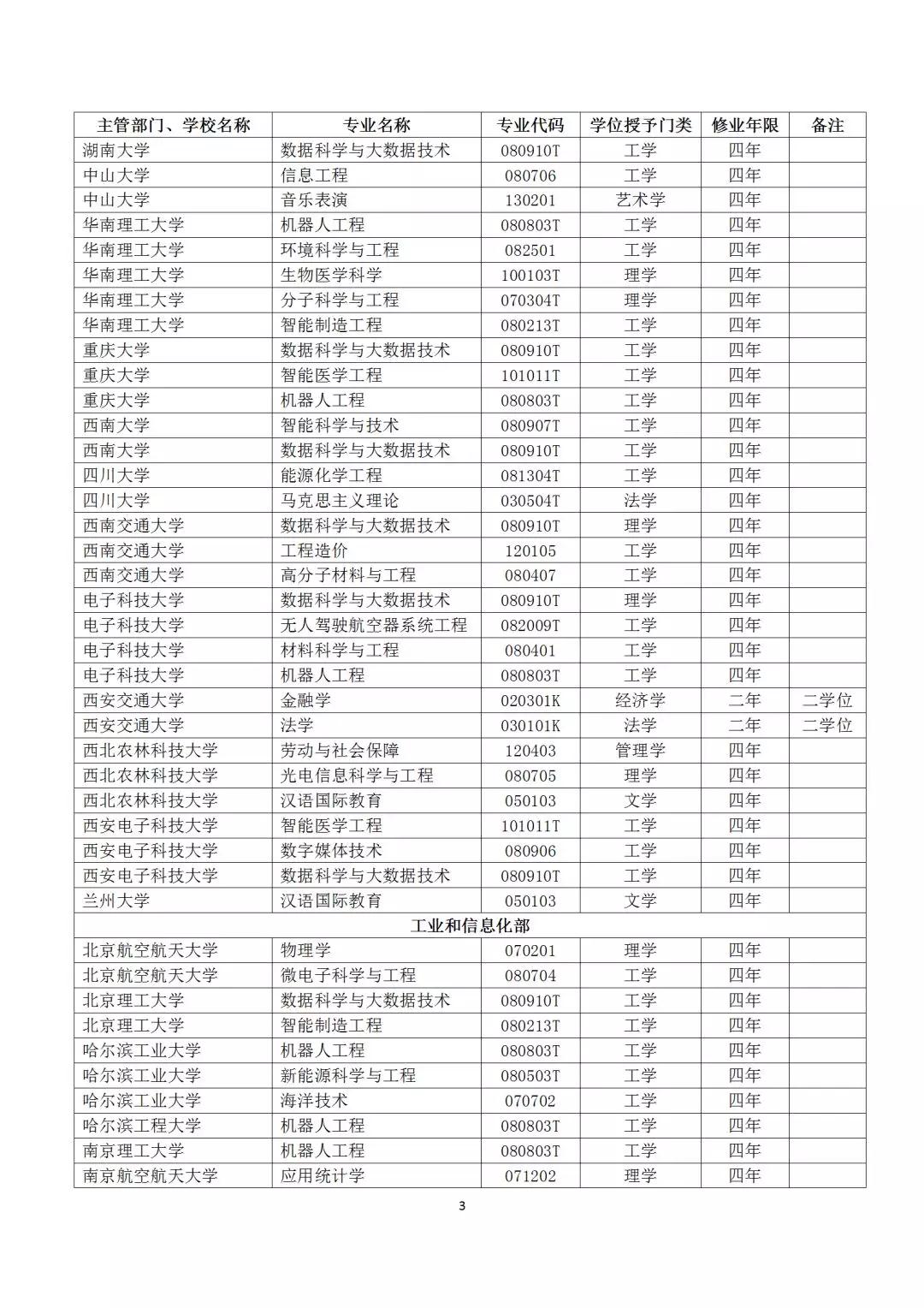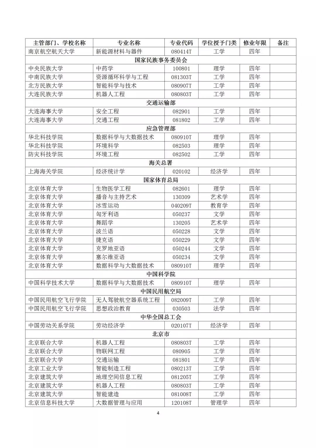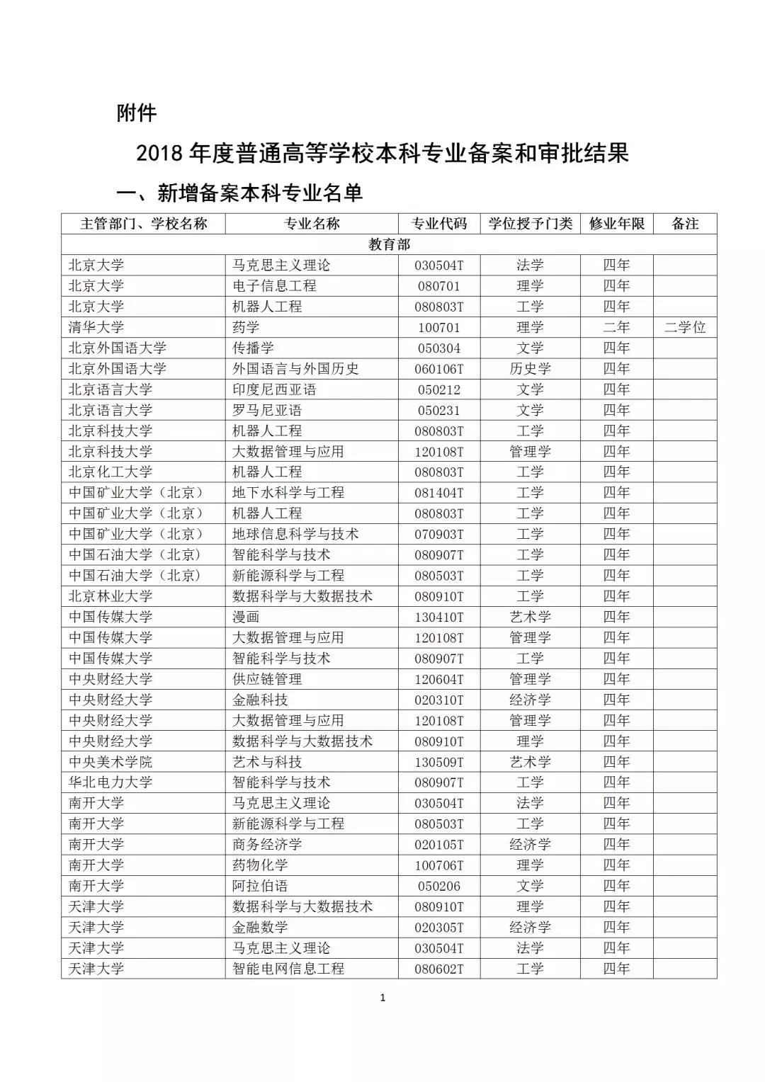 3月29日,教育部印發通知,公布2018年度普通高等學校本科專業備案和審批結果,確定了同意設置的備案專業、國家控制布點專業和新增目錄外專業點名單。