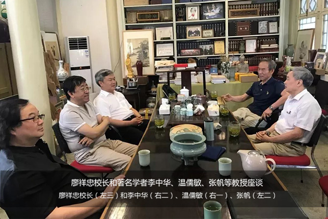 6月26日,中國傳媒大學校長、教育部新文科建設小組副組長廖祥忠教授帶隊赴北京大學,專程拜訪了我國文史哲教育方面的著名學者李中華、溫儒敏、張帆等教授,暢談對新文科建設的設想,交流對文史哲通識教育的心得與思考。 中國傳媒大學廖祥忠詳細介紹了中國傳媒大學先行先試,在全國啟動藝術類招生考試改革的情況。2020年中國傳媒大學將對藝術考試全面改革,在全國范圍內只考文史哲。因此要在推廣力度和范圍上下功夫,在通識教材建設上下功夫。