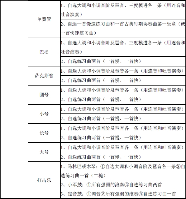 4、管弦樂器演奏招考方向招生計劃分配如下:
