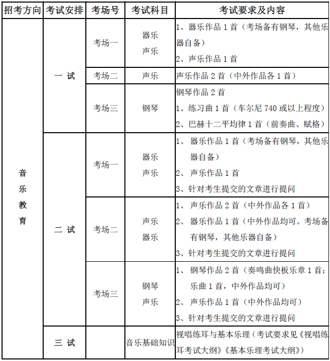 2、音樂教育招考方向招生計劃分配如下: