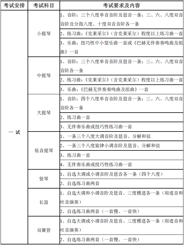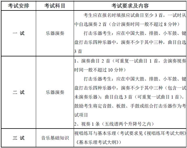 附錄四 中國音樂學院2017年本科招生考試