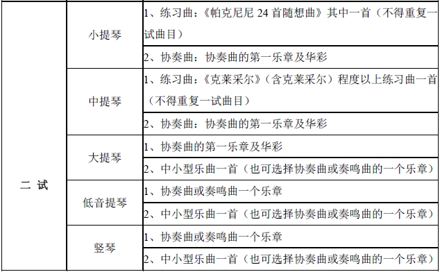 國樂系拉弦、彈撥專業應達到C類程度,吹打專業應達到D類程度。