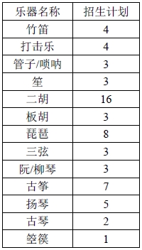 3、中國樂器演奏招考方向招生計劃分配如下: