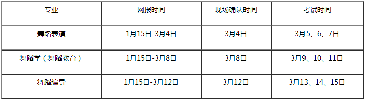舞蹈表演、舞蹈學(舞蹈教育)和舞蹈編導三個專業只在北京本校設立考點,實行網上報名、現場確認,凡報考我校上述專業的考生,須在2018年1月15日起至現場確認前登陸本網,嚴格按照我校網報系統(點擊進入)的說明和要求,認真準確填寫并提交信息。