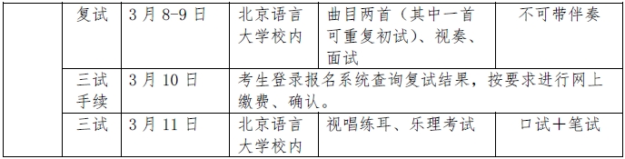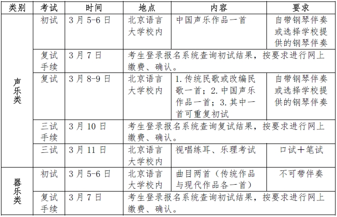 考試分聲樂和器樂兩類,安排如下: