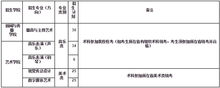 播音與主持藝術專業、音樂表演(聲樂)專業、視覺傳達設計專業和數字媒體藝術專業文理兼招。