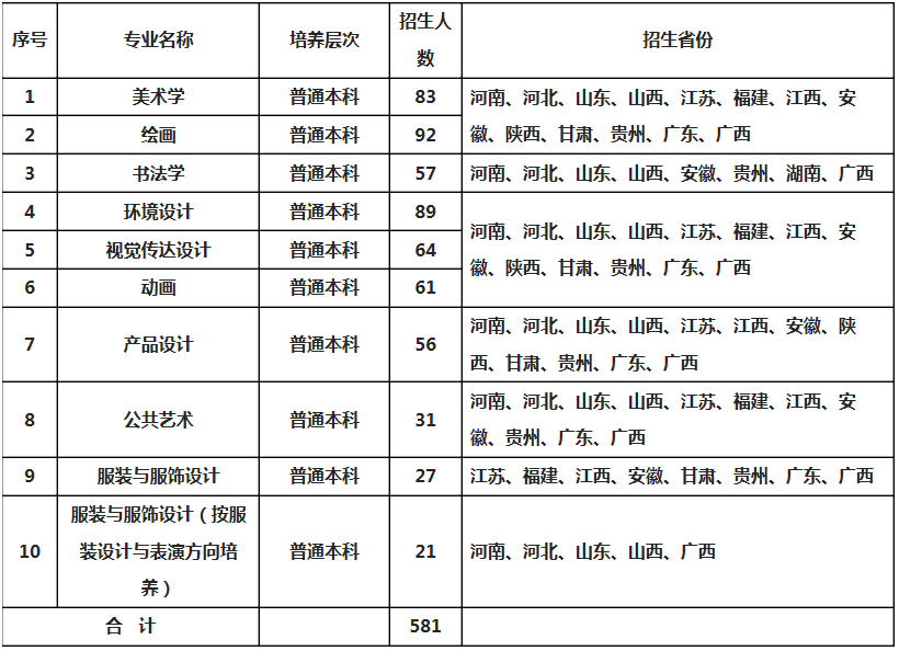 2.美術學、繪畫、書法學、動畫、環境設計、視覺傳達設計、產品設計、服裝與服飾設計(含按服裝設計與表演方向培養)、公共藝術等專業按綜合分〔綜合分=專業分(按比例折合成百分制)×60%+文化分(按比例折合成百分制)×40%〕排名擇優錄??;同等條件下優先錄取專業考試成績高的考生,在專業成績相同的情況下優先錄取外語成績高的考生。