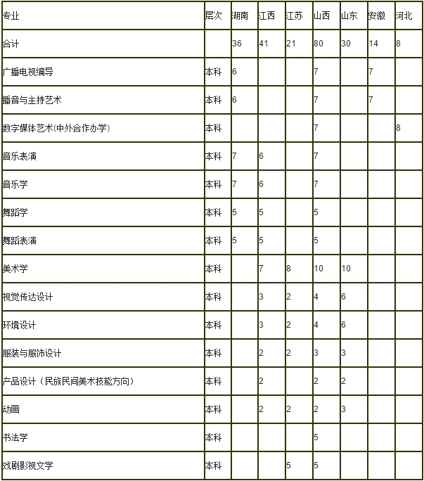3. 美術學、動畫、視覺傳達設計、環境設計、服裝與服飾設計、產品設計(民族民間美術技能)、數字媒體藝術(中外合作辦學)