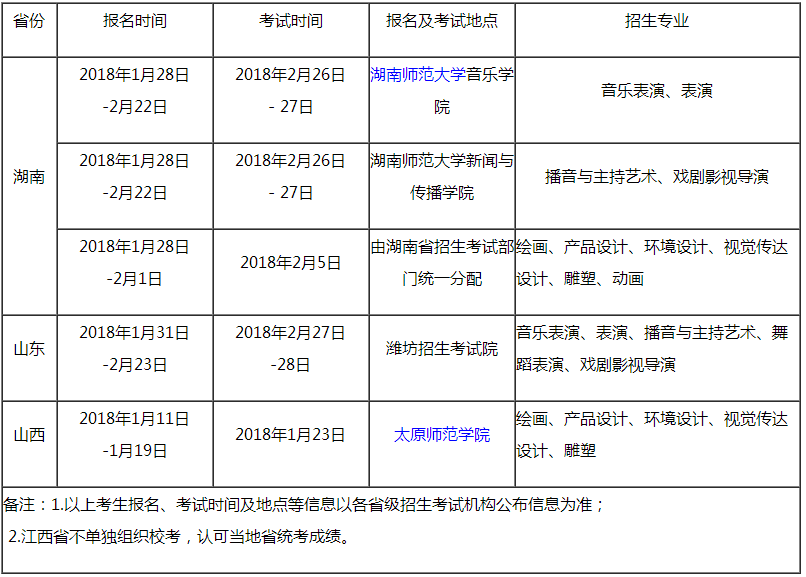 (四)江西省藝術類專業以省統考成績為專業成績,湖南、山西、山東省藝術類專業以校考成績為專業成績。