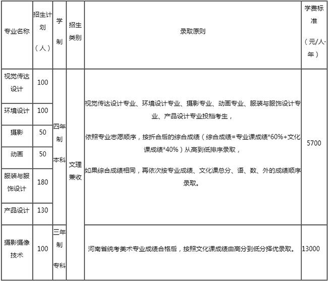 根據教育部相關文件規定,我校藝術類本科各專業均編制分省分專業招生計劃,具體以高考填報志愿時各省招生主管部門公布數據為準。