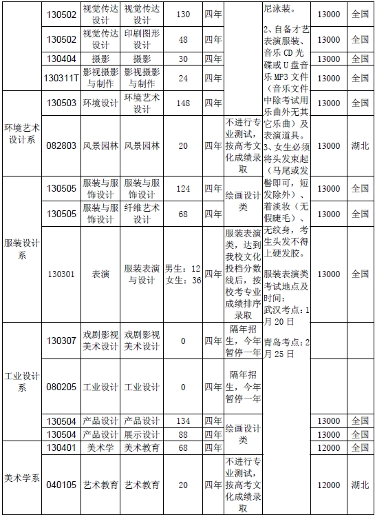 4、藝術設計學、藝術史論專業(美術理論類):不參加我校組織的專業測試,考生通過所在高考省份美術類專業統考本科合格后,按照高考文化成績從高到低擇優錄取。