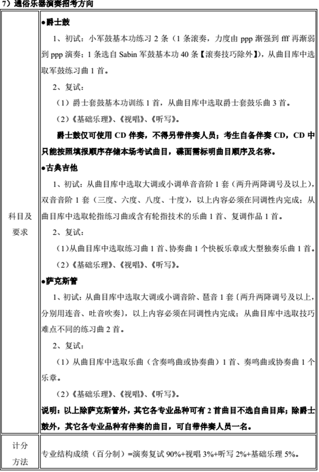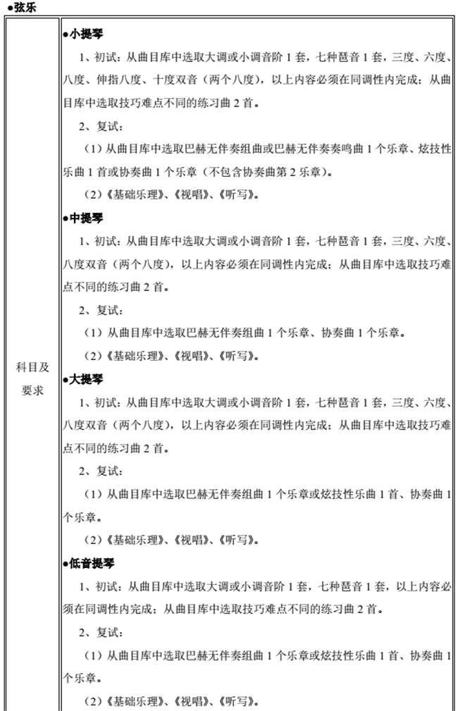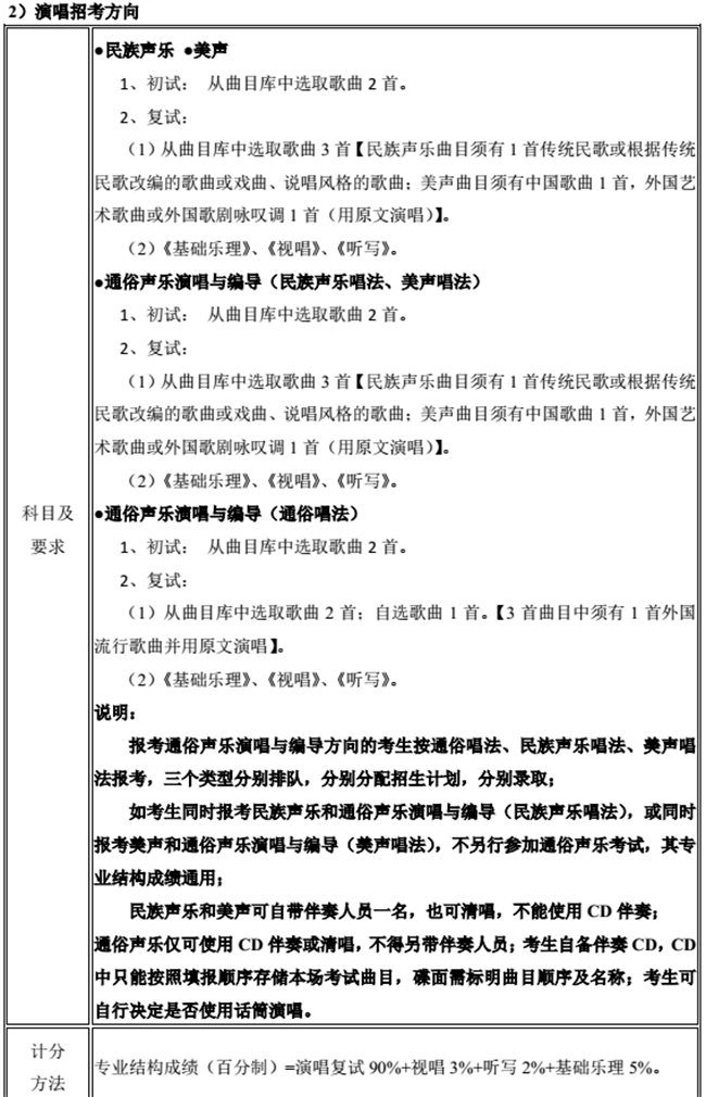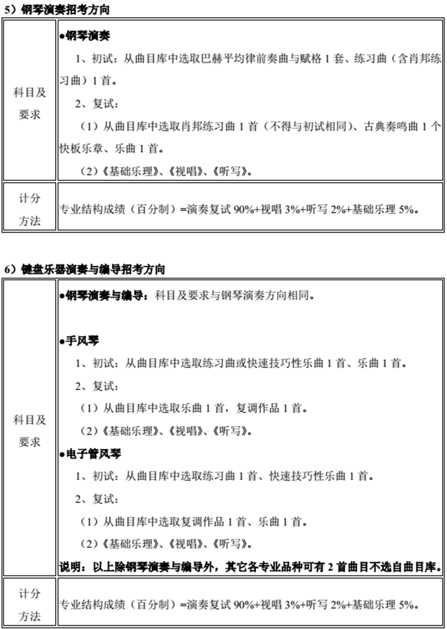 1、各招考方向演奏或演唱初試、復試曲目不得重復。