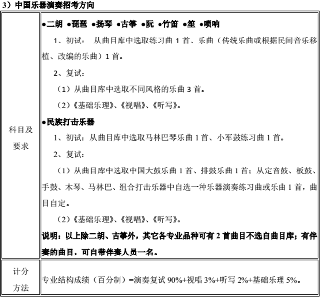 3、報考演奏招考方向的考生入學后樂器一律自備(鋼琴除外)。