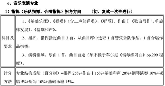 5、演奏、演唱、指揮類科目由考試委員會指定考查考試內容的全部或部分。