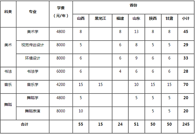 1.除山西音樂、舞蹈類專業文理兼招外,其他省份和科類只招收文科考生專業;