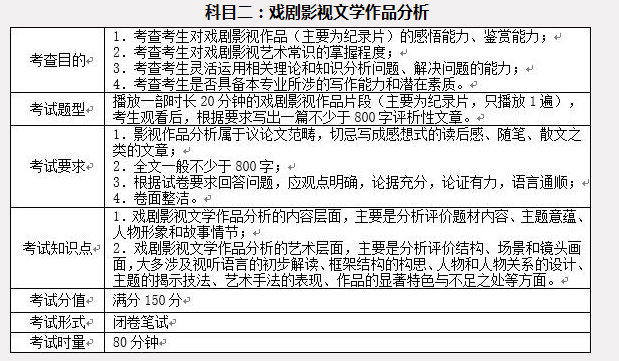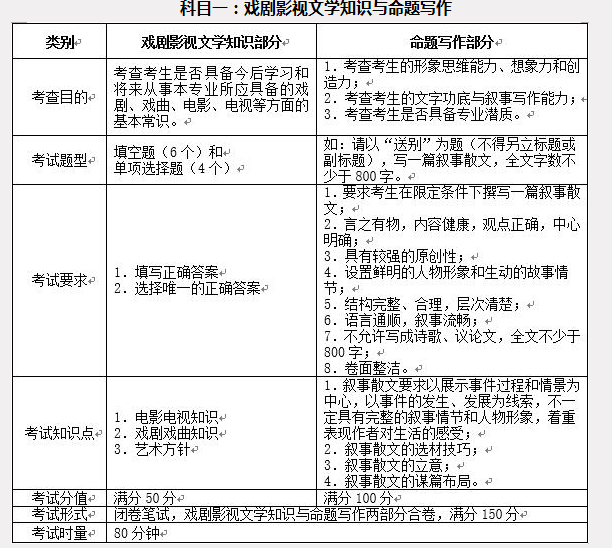 戲劇影視文學專業招生考試由下面兩門科目的筆試組成,滿分300分。