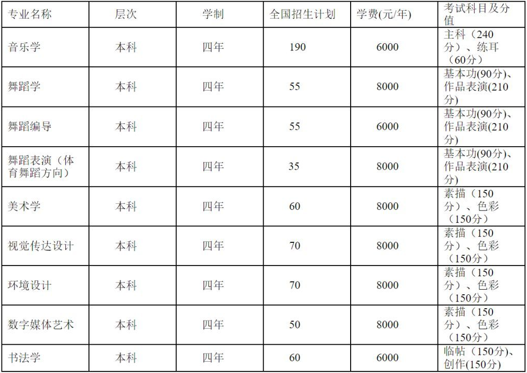 美術學:學制四年。培養學生掌握美術教育、創作的理論知識與技能。具備美術教育與創作能力,能夠在中小學校、文化部門、企事業單位從事美術教學與創作的應用型高級專門人才。