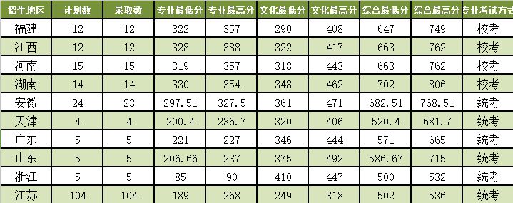 南京財經大學2016年藝術類專業各省錄取分數一覽表注:1、專業??妓孛?00分,色彩200分,總分400分。2、綜合分=專業成績+文化成績3、我校安徽藝術平行志愿投檔線為740.330096723分,征求平行志愿投檔線為733.620095949分;安徽省教育考試院藝術美術類投檔分計算規則為:投檔分=專業成績/專業滿分*700+文化成績/文化滿分*300