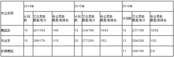 4.對文化成績達到各省同批最低錄取控制線且取得我校專業考試合格證書的考生,舞蹈編導、舞蹈學(師范)、舞蹈編導(體育舞蹈方向)專業按專業總分從高分到低分順序擇優錄取;書法學(師范)專業按綜合分(即文化總分加專業總分之和)從高分到低分順序擇優錄取。