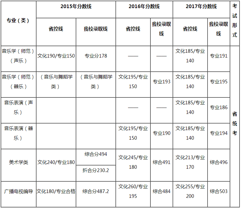 1、音樂類專業:對文化和專業成績均達到同批次省最低控制線的考生,由相關省份招考部門按文件規定進行投檔,對于進檔考生由學校按專業分從高到低擇優錄取;若專業分相同,則再按文化分從高到低擇優錄取。