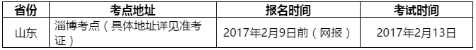 | 吉林 | 長春職業技術學院(長春市衛星路與臨河街交匯處) | 報名時間:2016年12月24日—31日(每天8:00—22:00) 報名網址:http://zyxk.jleea.edu.cn | 2017年1月12日 |