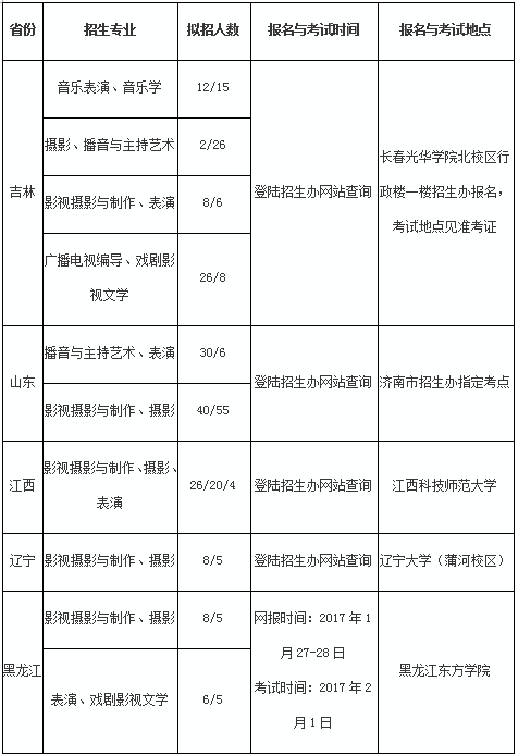 2.吉林省報考要求:考生必須先登陸我校招生辦網站,下載并填寫《長春光華學院2018年藝術類專業準考證》,同時準備身份證復印件和《吉林省藝術類專業報名資格證》復印件各一份(同時復印在一張A4紙內),填好表格后到我校招生辦現場交費確認考試信息。