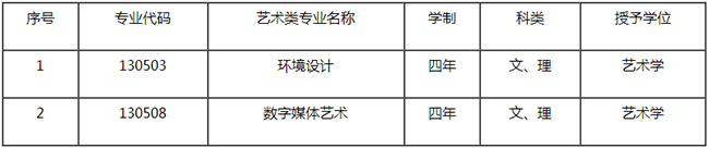 學院2018年藝術類招生專業2個,文理兼招。具體如下: