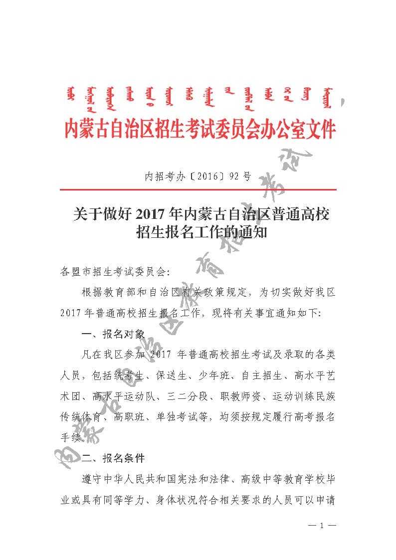 文章來源:內蒙古教育招生考試信息 2016-12-20 19:09:00