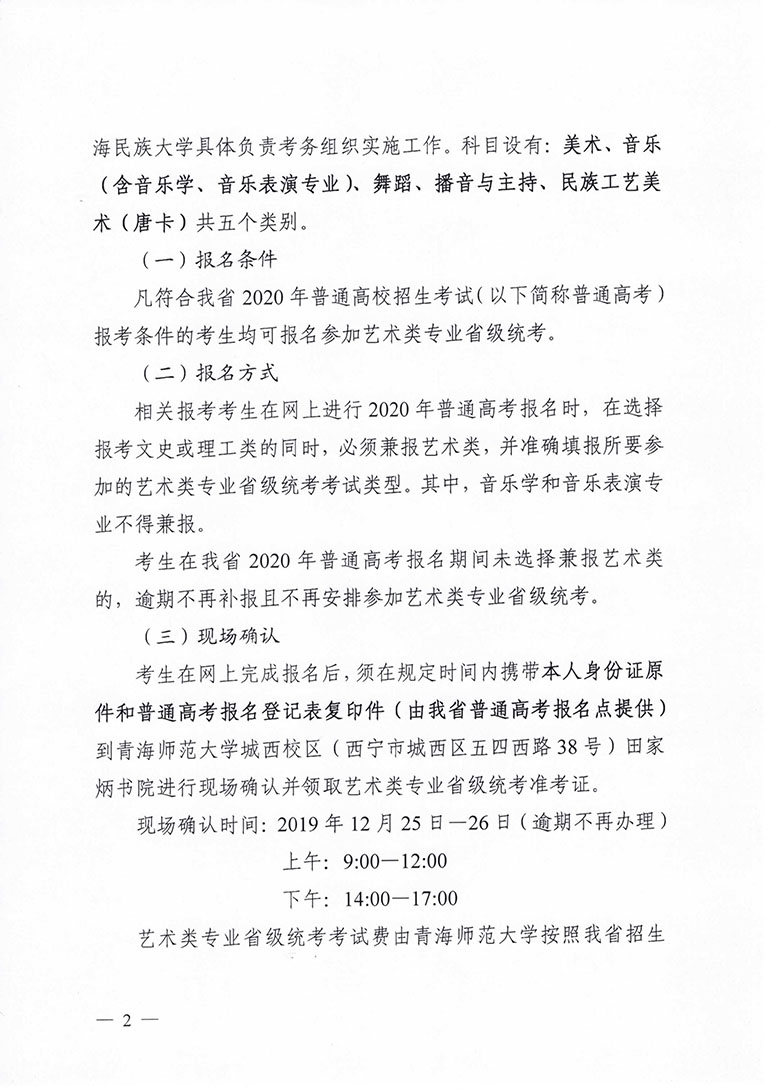 上一篇: 青海省高等學校招生委員會辦公室關于做好2019年普通高等學校招生藝術類專業考試工作的通知