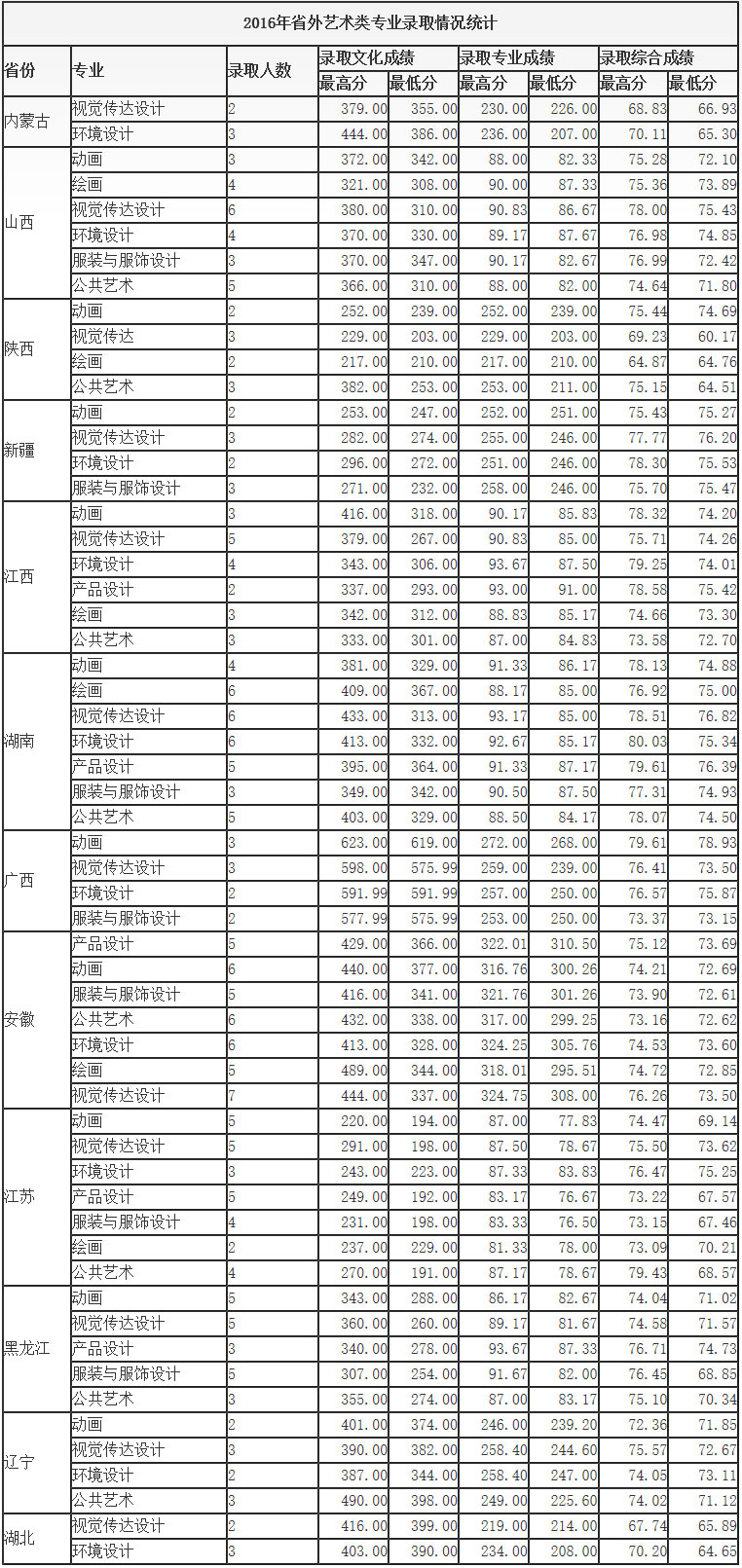 | 2016年省內藝術、體育類專業錄取情況統計 | |||||||