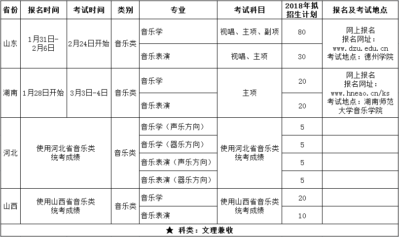 二、2018年音樂類招生專業考試報考須知(山東省考生)