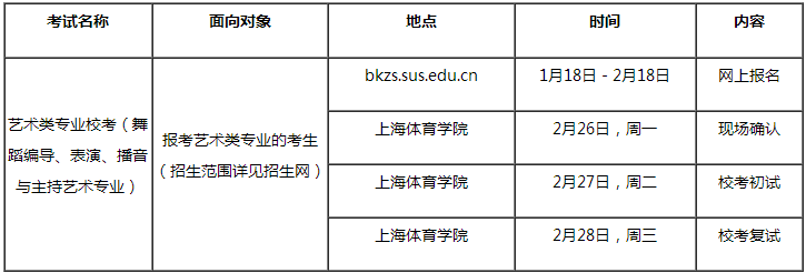 2018年上海體育學院本科招生考試日程安排(截止1月9日)