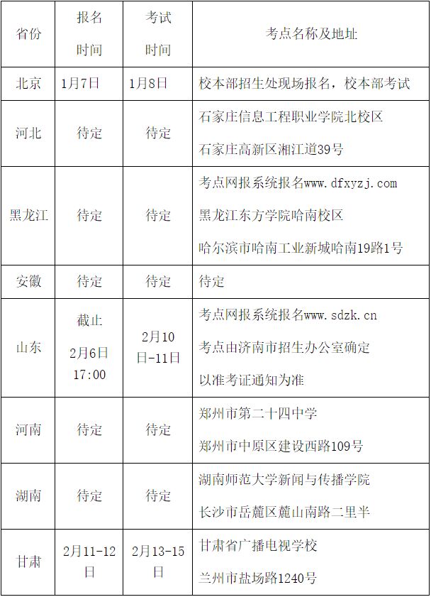 3、廣播電視編導專業在山西、遼寧、浙江、江西、湖北、重慶、四川、貴州和陜西等省份使用當地廣播電視編導類統考成績,進檔考生按高考文化成績由高到低擇優錄取。