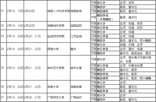 (音樂舞蹈類報名考試時間2月14日-2月29日)