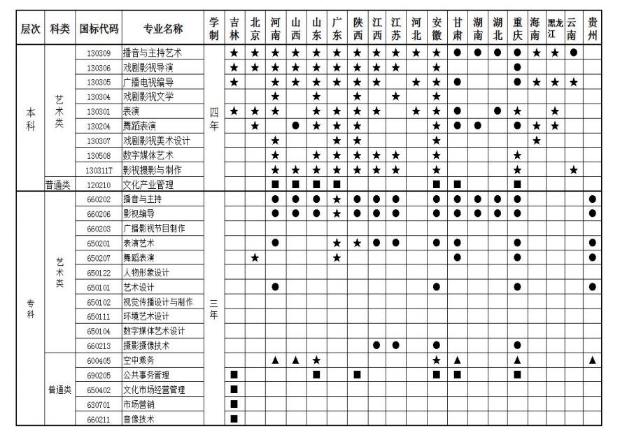 注:各省招收專業和計劃以各省考試院公布信息為準。