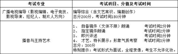 報考視覺傳達設計、環境設計、產品設計專業的考生須參加藝術類美術與設計類專業考試;報考廣播電視編導專業的考生須參加藝術類編導類專業考試;報考舞蹈表演專業的考生須參加藝術類舞蹈類專業考試;報考播音與主持藝術專業的考生須參加藝術類播音與主持類專業考試。