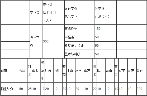 四、招生計劃(最終計劃以各省公布為準)2017年我校藝術類實行大類(設計學類)招生。一年后按照學習成績和學生志愿,根據招生計劃進行專業選擇。