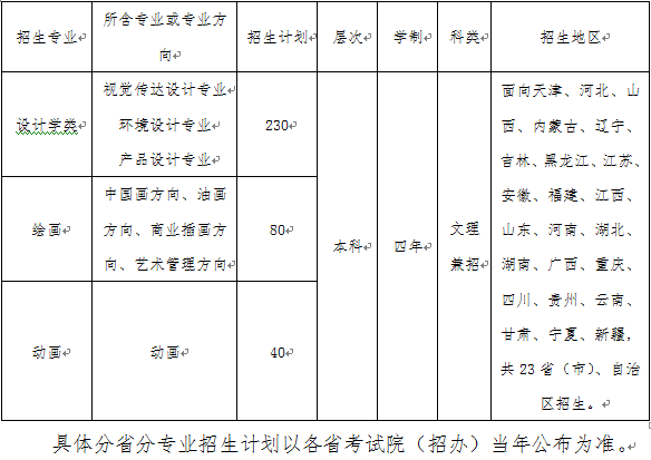 包括中國畫方向、油畫方向、商業插畫方向和藝術管理方向。