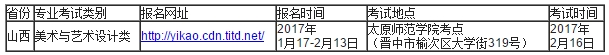 我校2017年在山西省設點組織美術與設計類專業考試,報考我校2017年美術學類、設計學類專業的山西省考生必須參加我校單獨組織的美術與設計類專業考試,我校認可單獨組織考試成績。
