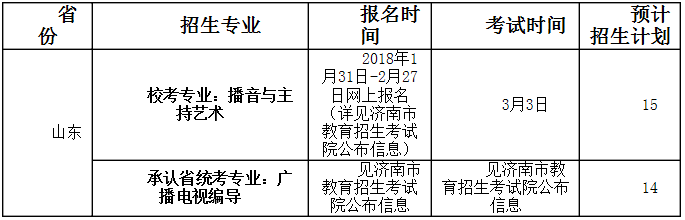 2.考生報考我院播音與主持藝術專業應按照我院簡章規定的專業招生要求,在規定時間內完成專業???。只有專業校考成績合格的考生才能填報我院在山東省播音與主持藝術專業的高考志愿。